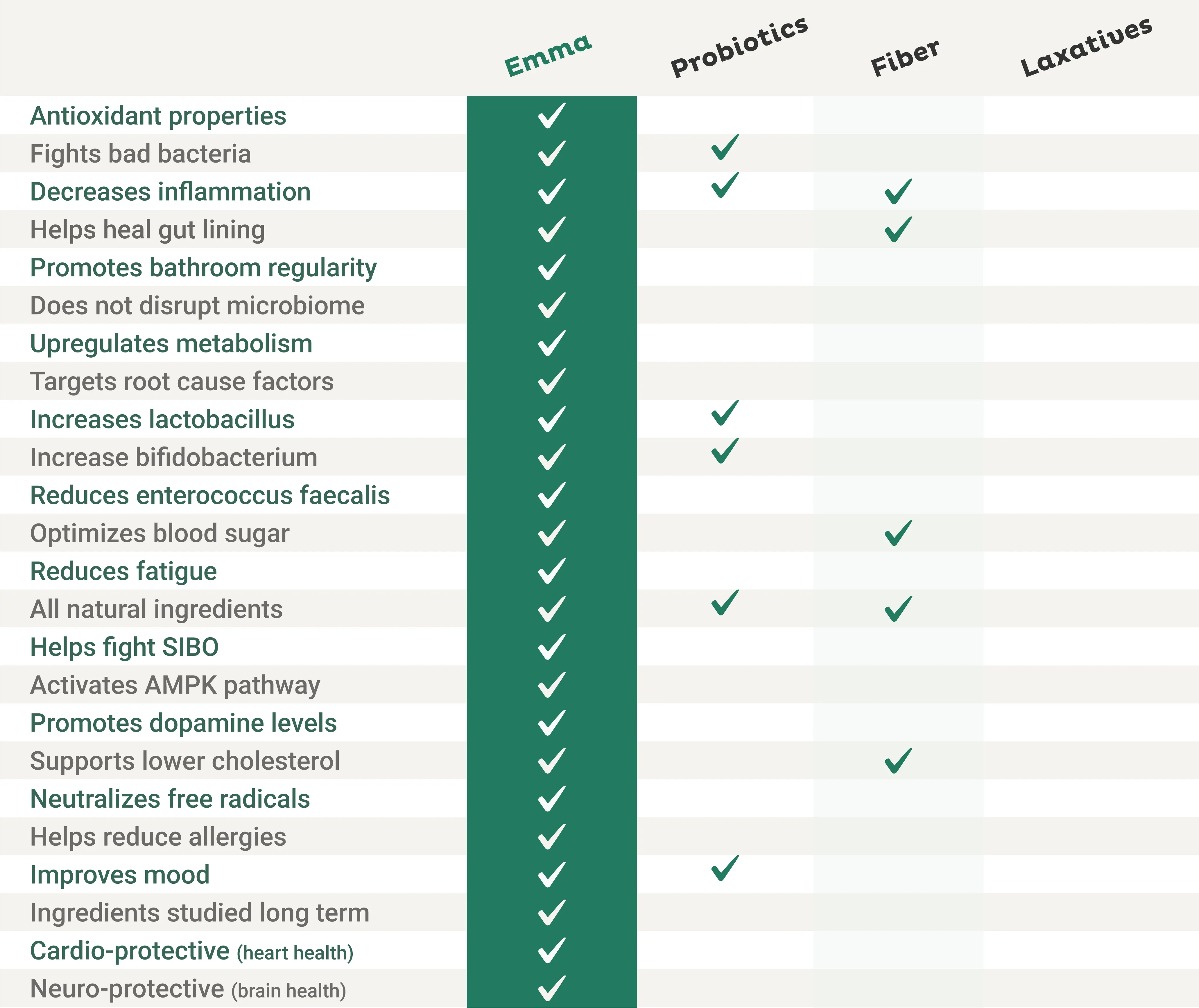 Emma supports full elimination and reduces harmful bacteria that contribute to discomfort and bloating. I am excited to endorse Emma as an effective, science-driven formula that provides my patients with real, lasting relief from their digestive symptoms, allowing them to lead healthier, happier lives.”